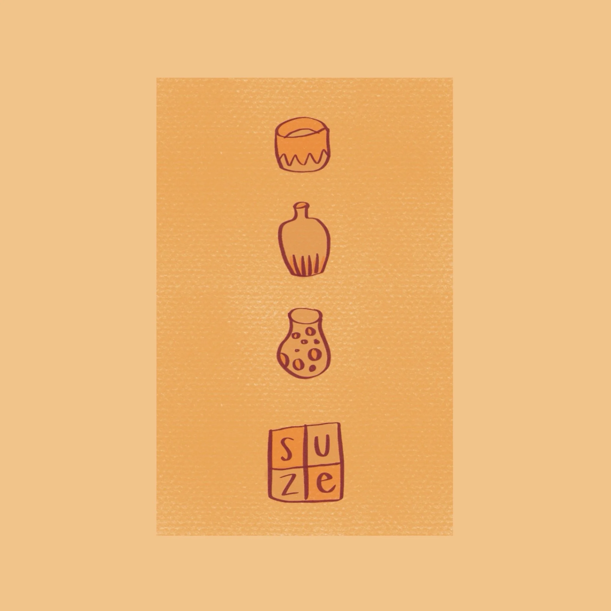Suze Pauw keramiek Visitekaartje en logo Op aanvraag:Portret/illustratieHandletteringUpdate logoOranje/aardewerkkleuren